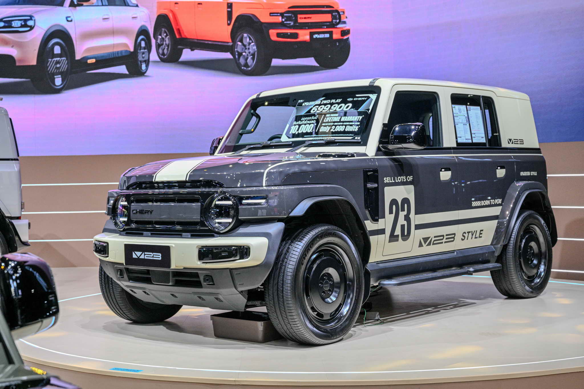 | Chery V23 | 10,000 THB discount*, 1.98% Interest*, Free Wall Charger*, Free 1-year Insurance*, and Lifetime Warranty (First 2,000 rights).* |