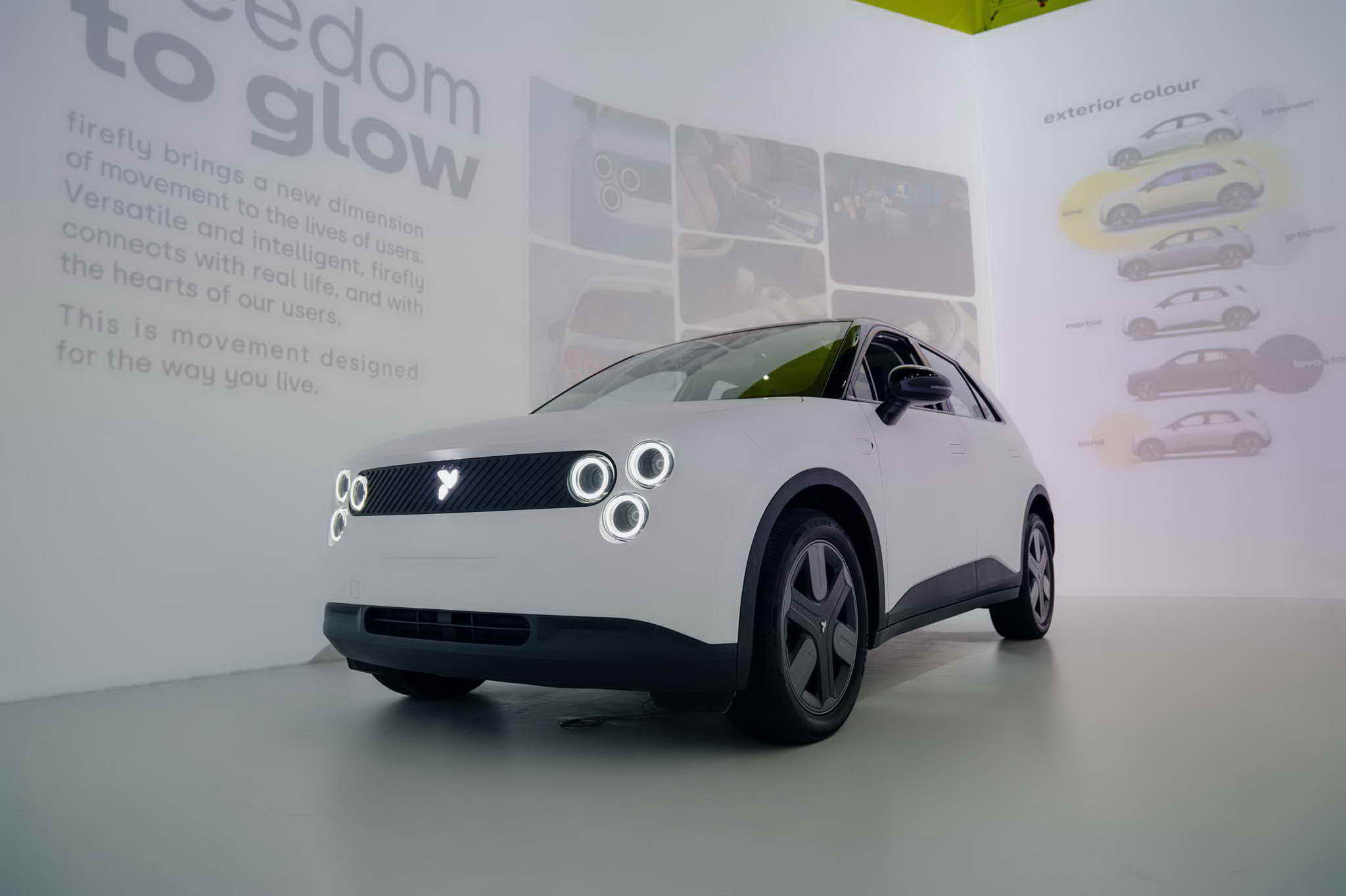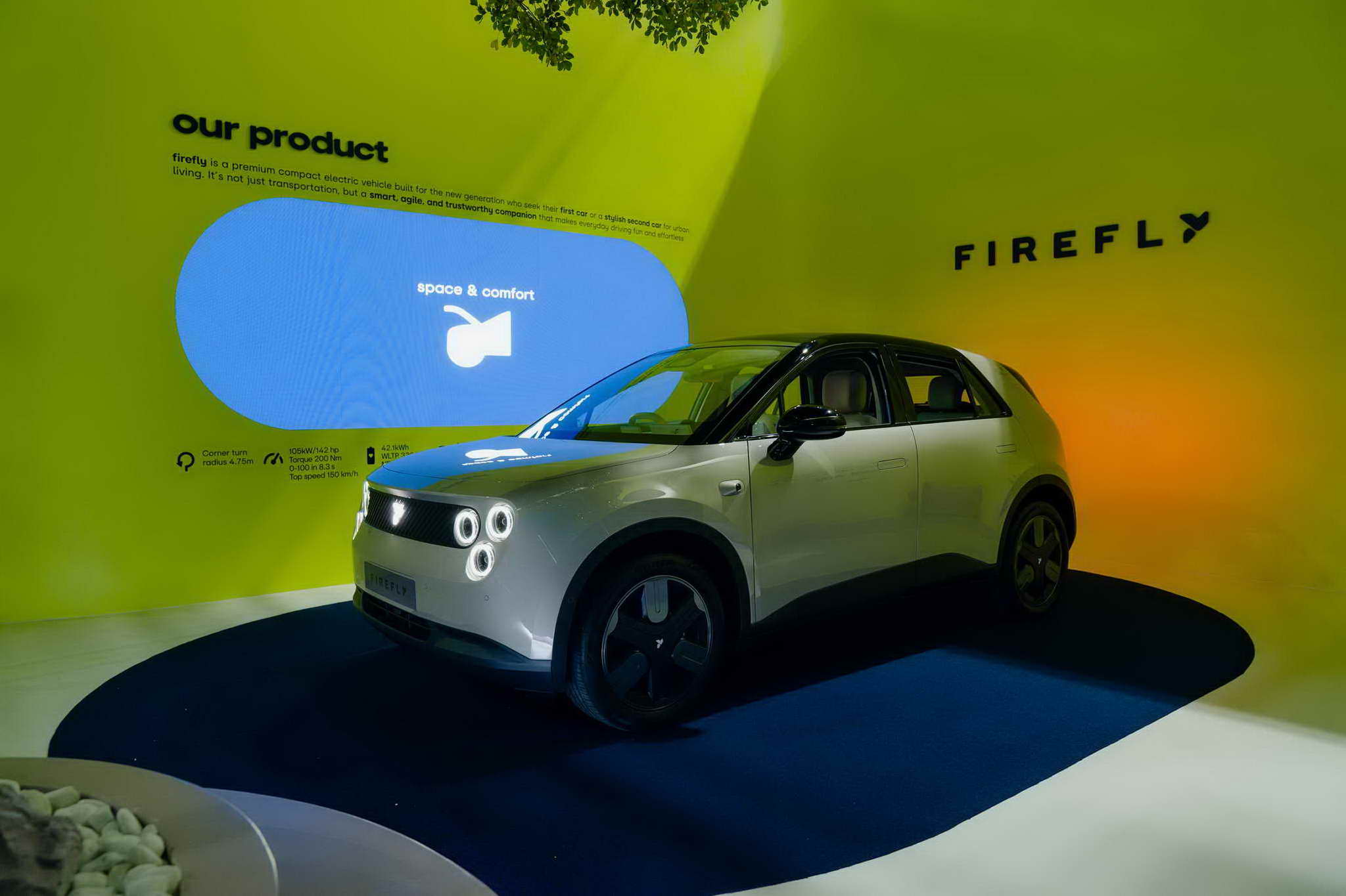 Firefly is a small, smart and premium designed to meet the lifestyle needs of modern urban drivers with confidence. Built under the concept freedom to glow, it reflects freedom on every journey while elevating the premium electric driving experience in every dimension.